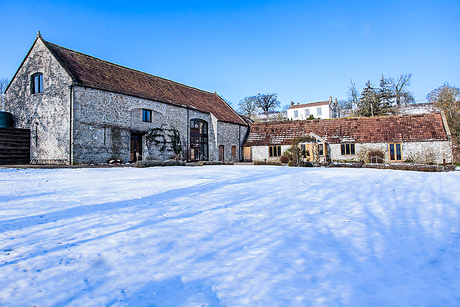 The wedding was held at The Thythe Barn, Priston Mill, Bath, UK. We’d had quite heavy snow a few days before the Wedding day but a thaw had set in and made the roads drivable on the day. It was still quite chilly though.