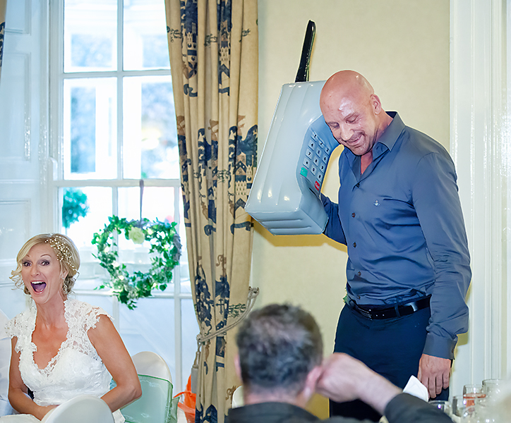 With the breakfast finished we moved on to the speeches. I have to say, from all the weddings we shot in those three years, and since, the speeches here were the funniest we ever heard. I found myself laughing along with everyone else whilst trying to concentrate on getting my pictures. There were literally tears of laughter wherever you looked in the room.