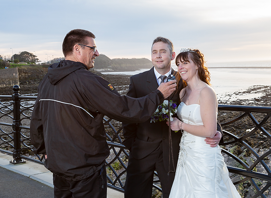 The couple also wanted a picture, on the seafront promenade, with the restored Clevedon Victorian Pier in the background. It’s become quite a landmark and has been used in quite a few TV drama series. It was also used by One Direction for a music video. You can buy a ticket to go on to the pier for wedding photos. Back then it was £25 for 30 minutes. Andy and Louise decided against that as the pier timings really didn’t work for us. There was never time to do everything and the tandem shot was more of a priority for them.
