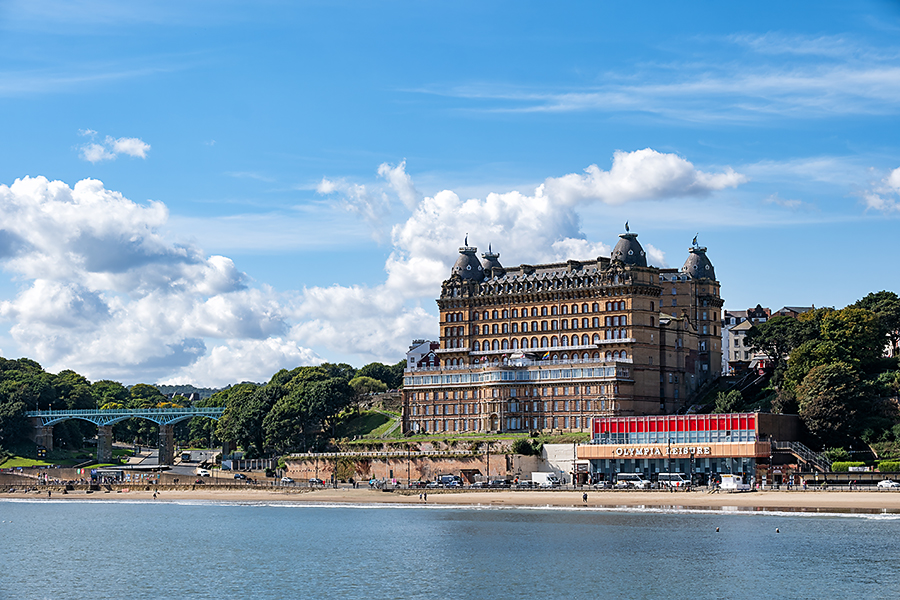 The seafront at Scarborough looking back towards The Grand hotel and South Bay.