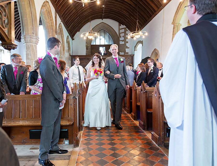 Slowly, everyone drifted into the church as we approached ceremony time. Jen and her Dad arrived on time but then someone realised an important family member hadn’t arrived. They decided we would have to wait for her and I can’t recall how late she was. It did put everything back by at least thirty minutes. If this had been a winter wedding I’d have been sweating on shot time but, I knew we would have the evening to catch up anything we had missed.