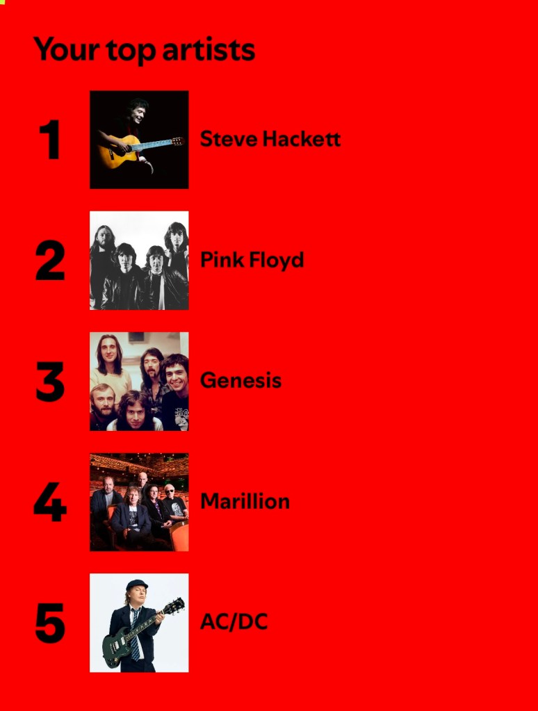 Although I do listen to my music on the home Hi Fi system, I do a lot of my listening on headphones whilst I’m riding my Smart Bike using Zwift. That’s normally three or four, hour long, sessions per week. Lots of listening time which has been a lot of Steve Hackett. AC/DC would be on the list for the same reason. Early Marillion stuff gets played a lot in the car or on the headphones on holiday.