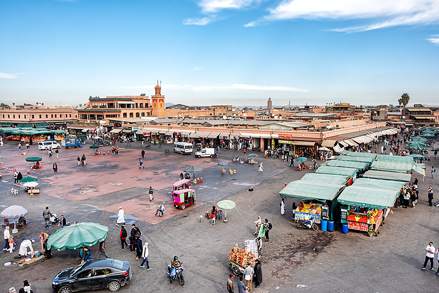 There’s not a great deal to see but it’s just a really nice walk, on a wide well kept pavements, away from the bustle and hassle on the other side of the wall. We followed the wall for several kilometres and decided to duck back into the medina madness via the Bab er Robb gate, that’s located by the Royal Palace and the Kasbah. We turned immediately left and made our way back to Jemaa el-Fnaa for a mint tea and coffee on the rooftop of a cafe overlooking the square.