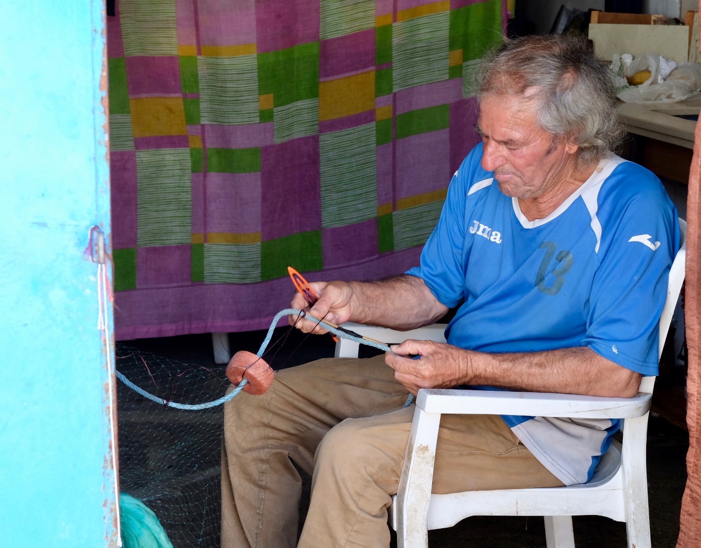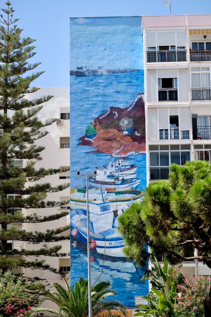 The seafront promenade is really nice to stroll along. From the main town it makes its way down to the old port. We really enjoyed wandering around the old port area. We always arrived in the middle of the day when it was quiet. We did stumble across the odd fisherman mending their nets. I asked if I could take pictures of them working and they were fine with that. Opposite the old port is the modern marina. Again a nice place to explore. There’s a traditional Bull Ring at this end of town with a Bull Fighting museum.