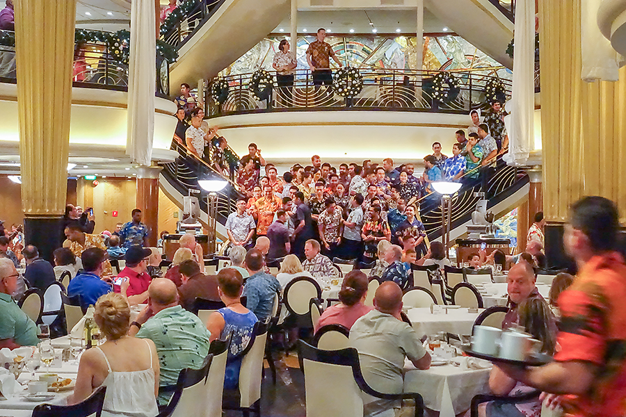 An American lady on the table next to us picked up on our accents straight away and began talking to us. She and her husband were part of a group with two other couples sitting at her table and all were experienced cruisers – We’re talking sixty plus cruises when I say experienced. They were really friendly people and had lots of hints and tips for us. It was a really nice introduction to our cruise experience and set the tone for the whole trip. We bumped into the group several times during the cruise and they always stopped to catch up with us.