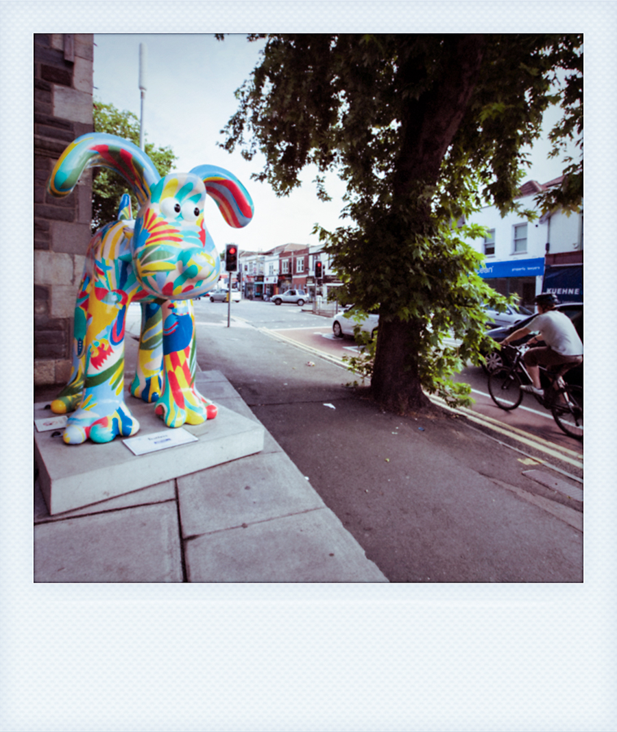 I came up with the idea of perhaps taking polaroid images of the Gromits. I had a vintage polaroid camera and I’d been able to use it with Impossible Project film (a polaroid film substitute). My initial idea was to take that camera out with me to photograph the sculptures but that quickly became a non starter, mostly because of the cost involved.