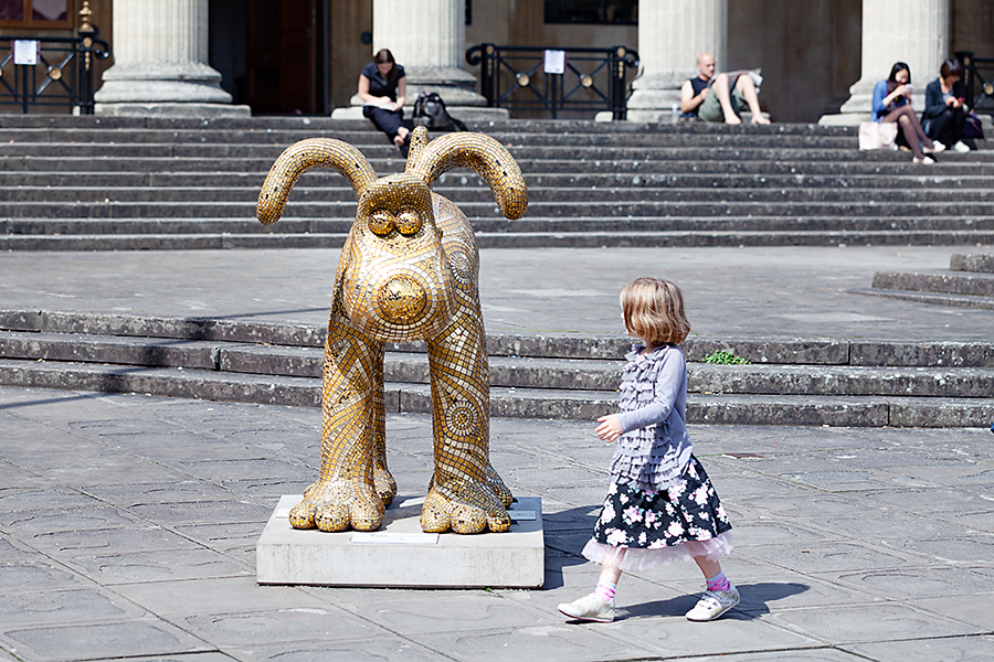In the summer of 2013, eighty giant Gromit sculptures were placed out on the streets of Bristol for 10 weeks. They were sponsored by local businesses, with artists and household names including Sir Quentin Blake, Cath Kidston, Nick Park and Disney Pixar, lending their talents to design the dogs.