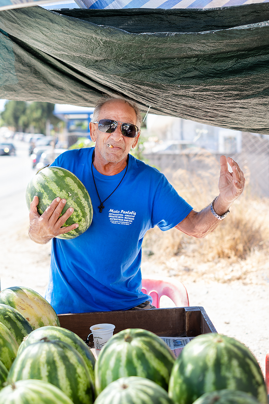 We’ve had some really good, funny interactions with people after I’ve asked them for photographs. The Melon sellers below are now friends and we make a point of seeing them whenever we go back to Rhodes. We took doughnuts for them last time and we left with a melon! They wouldn’t take no for an answer but those things are heavy and we had a five mile walk back to the hotel. We did manage to crack it open and eat some of it but about half of it went in a bin.