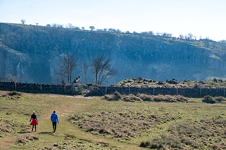 We parked in Cheddar, it wasn’t that busy being February, for a reasonable £6 – all day parking. From there we climbed the northern side of the gorge, climbing for quite some time until we reached a viewing point looking back down onto Cheddar and the gorge.
