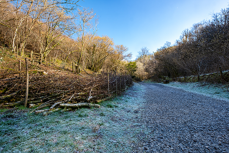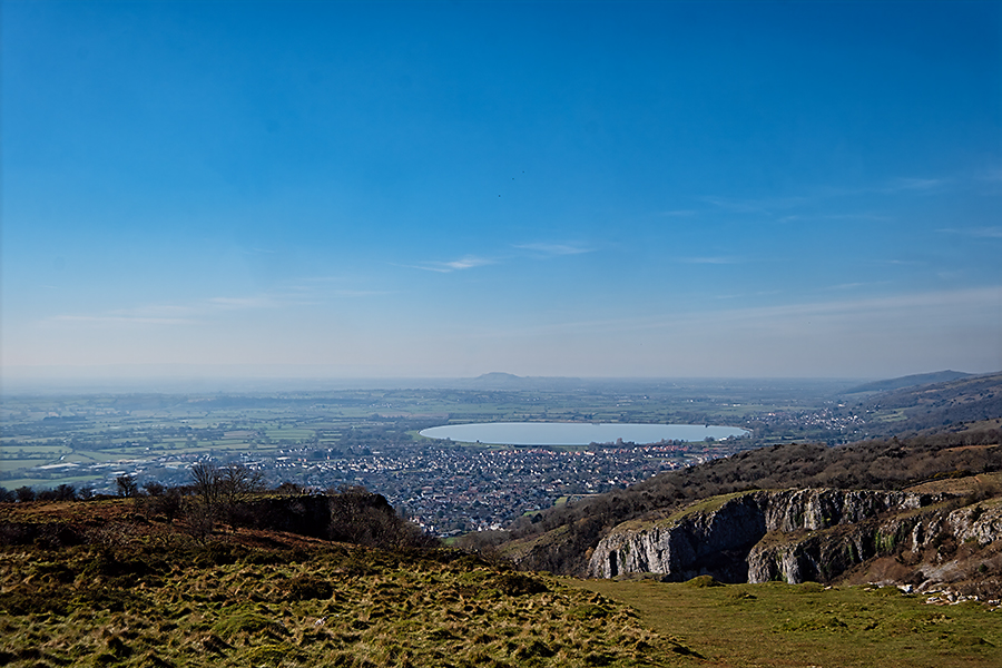 Although we were bathed in warm sunshine, and had taken our coats off within 15 minutes of starting the walk, anywhere shaded was quite cold with a good frost still on the ground. Unfortunately it was also quite hazy looking away into the distance. However, from the top of the gorge, we could just about make out Glastonbury Tor to the south and across to the Welsh coast looking west across Cheddar reservoir.