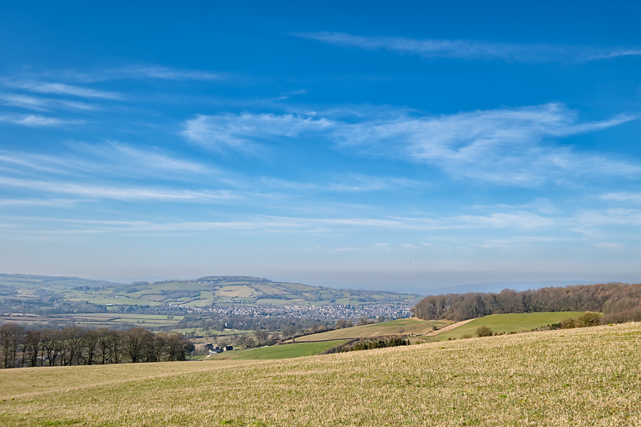 A view towards the Malvern Hills with Winchcombe, our start and finish point, in the valley.