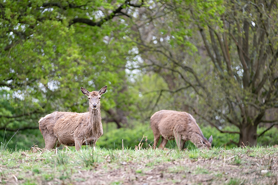 Red deer (in their duller winter coats) roaming in the park. There’s no cropping here and the deer were grazing close to the main path.
