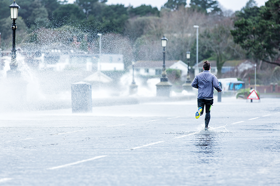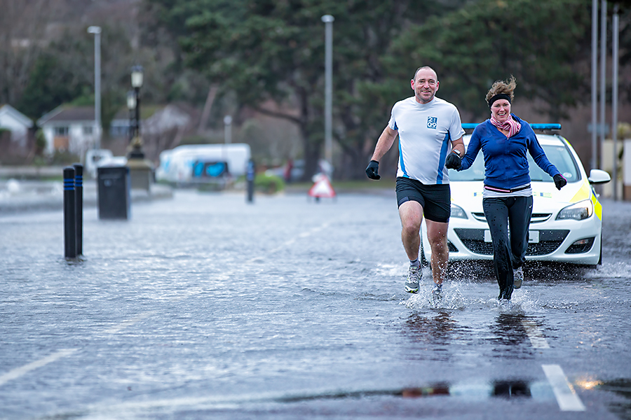 These two images were taken in Poole, Dorset, UK where we were visiting my in-laws. These were taken in 2014 after a storm had damaged and flooded the coastline, forcing police to close the road. It didn’t deter these runners though, determined to carry on with their usual fitness regime.
