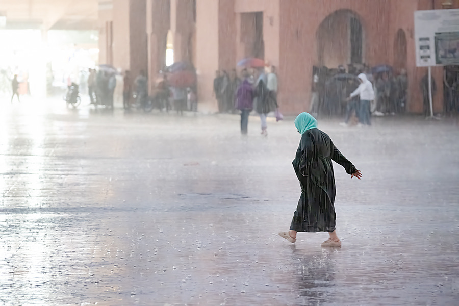 A torrential downpour during a storm in Marrakech last year.