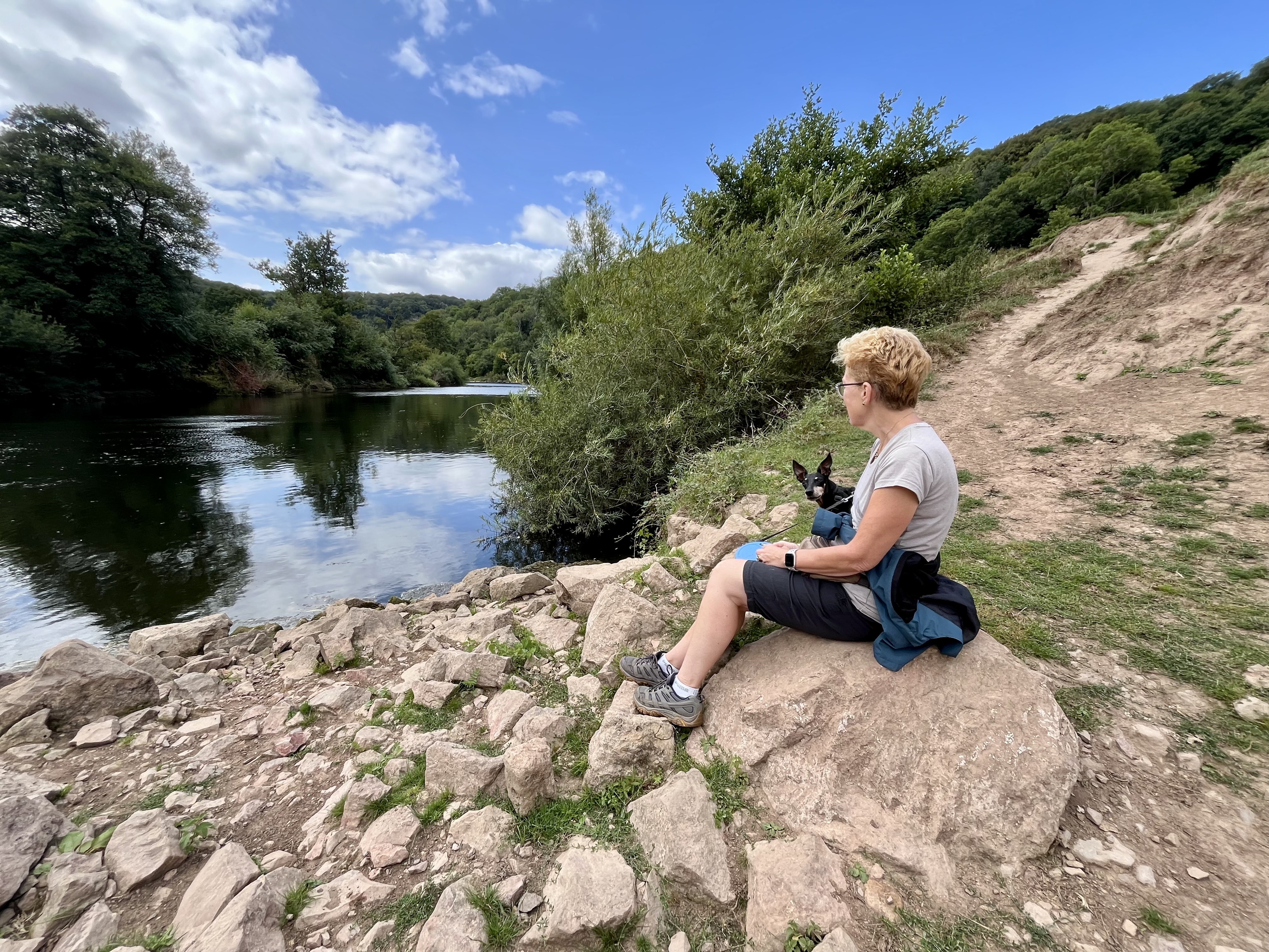The walk from that point was pretty straight forward as we were following the river all the way back. Towards the end the path along the river bank was quite overgrown. Enough for me to wish I’d worn my long walking trousers rather than my shorts! We also saw several deer in woodland on the side of the river so I wouldn’t be surprised if the dog has picked up the odd tick. Having said that I haven’t found any on her since we’ve been back and she can pick them up pretty much anywhere we go these days.