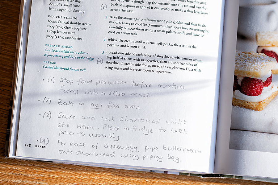 Back to making shortbread – I wanted a bake I could make with my Granddaughter who was staying with us. She’s joined me on my baking journey, and likes to bake, so we perused the book and decided to take on the Lemon Shortbread with Raspberries and Cream bake, pictured above. It looked fairly straightforward and was something we could work on together.