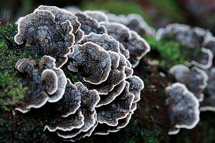Turkey Tail Fungi. Another bracket fungus, its shape being similar to that of a wild turkeys tail feathers