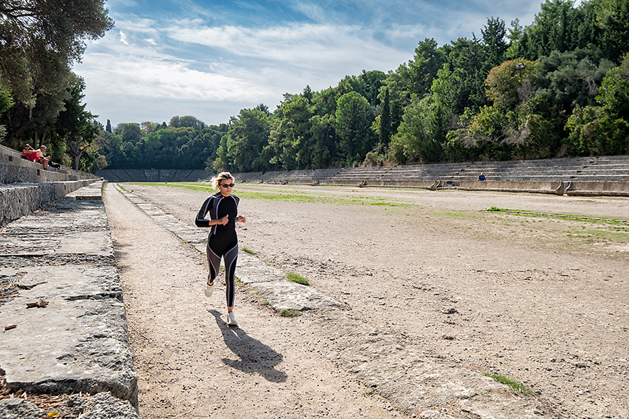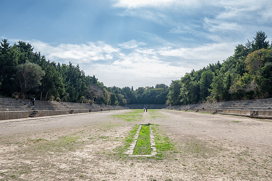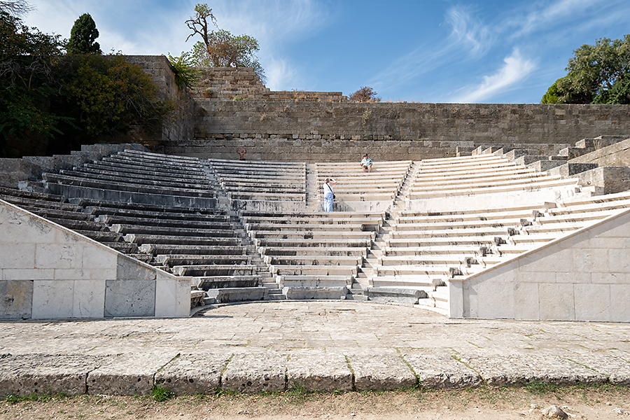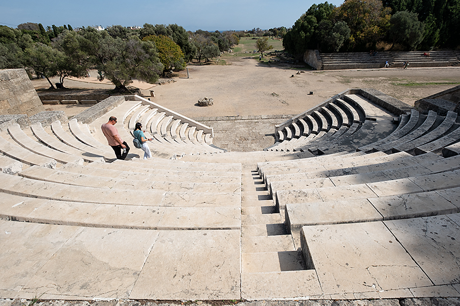 Following the road route we found the site with no further problems. The Acropolis is in a park area and open to the public with no entry fee or staff. You’re free to wander around the site which was pretty well kept with a café and toilets. In the grounds are the sparse remains of the Temple of Apollo (covered in scaffolding). An Odeon which has had most of its original stonework replaced and a large Games Arena. There’s more information on the site here, at Wikipedia – Acropolis of Rhodes