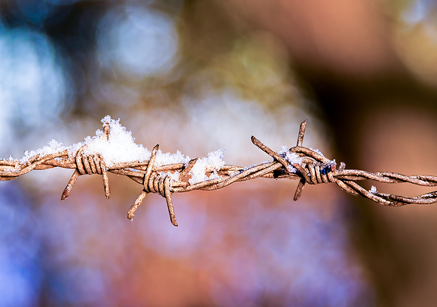 Well chosen! The cactus flower has a very shor life indeed, and the barbed wire with snow is a great catch!