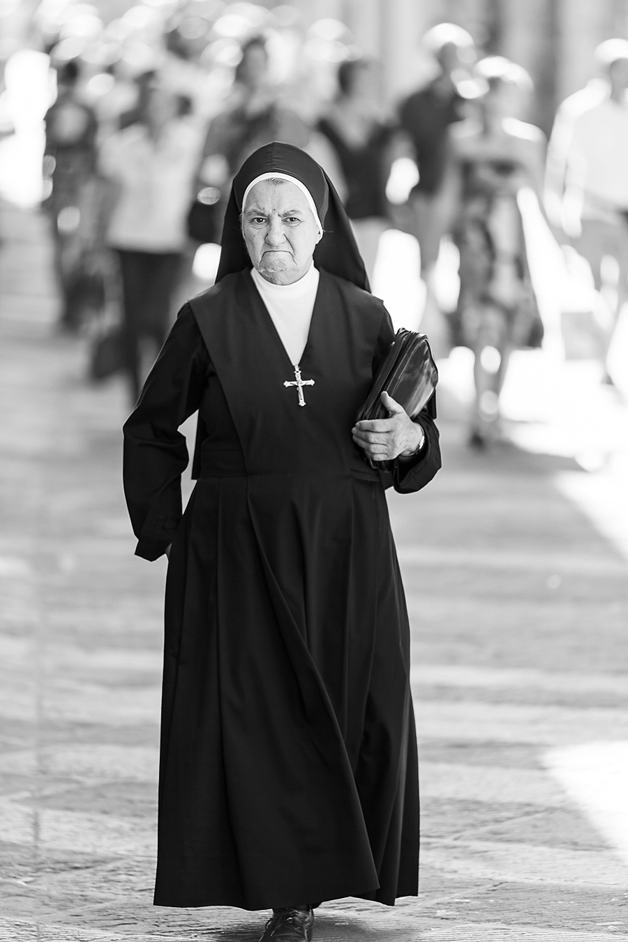 • Thanks Beth. I shot that with a 70-200 zoom. I can’t remember if she walked past me or not after I shot the pic. I certainly don’t remember getting any grief. Italy was great for people pics. Everyone i asked for a pic, including a policeman said yes when I asked. Perhaps that’s where i got the confidence to snap the nun 🙂