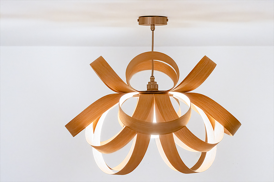 This is a Tom Raffield wooden lamp shade that we bought earlier this week. Our ceiling lights were well overdue a makeover and we’ve admired these shades for some time. So, we took the plunge and bought one. They’re hand made from thin, steam bent, strips of wood and we chose oak. It looks as nice as we thought it would. A brilliant shape and design.
