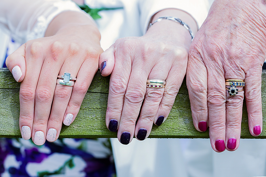 Great examples of juxtaposition. You took the theme and ran with it! I especially love the 3 generations of hands/rings and the little boy with his father. Great captures!